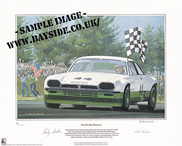 Only 4 remarques remain! Thundering Elegance portrays Bob Tullius in his Group 44, Inc. Jaguar V-12 XJS celebrating