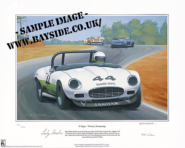 Less than 50 remain! E-Type Victory Swansong shows the Group 44, Inc. Jaguar V-12 E-Type, driven by Bob Tullius breaking away from the
