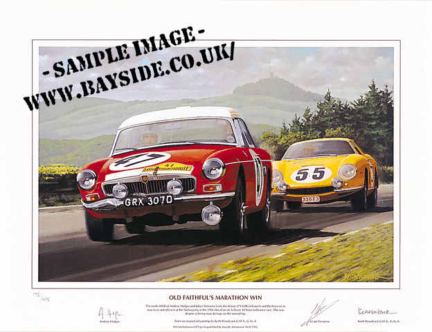 of "Old Faithful" during the 84 hour Marathon de la route in 1966. The MGB was pitted against powerful
